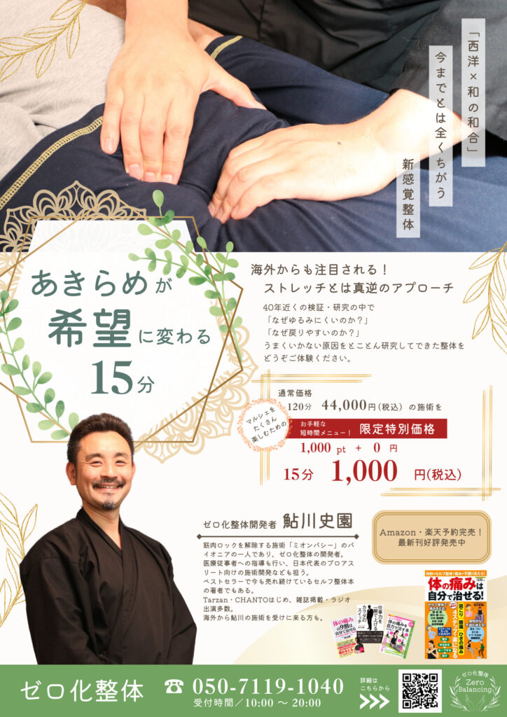 この貴重な機会に、ゼロ化整体を体験しに来てください。